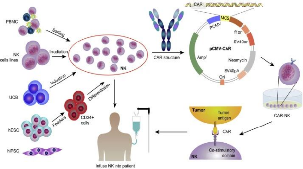 CAR-T cell therapy has gradually matured with the discovery of effective targets and the continuous improvement of CAR, and has made great achievements in conquering a wide variety of cancers, especially lymphomas, leukemias and other malignant hematological tumors. However, this has not satisfied scientists' expectations. With the hope and exploration of completely conquering cancer, a new type of anti-cancer warrior was born - CAR-NK. The principle behind it is to use genetic engineering technology to equip NK cells with the high-tech weapon "CAR".