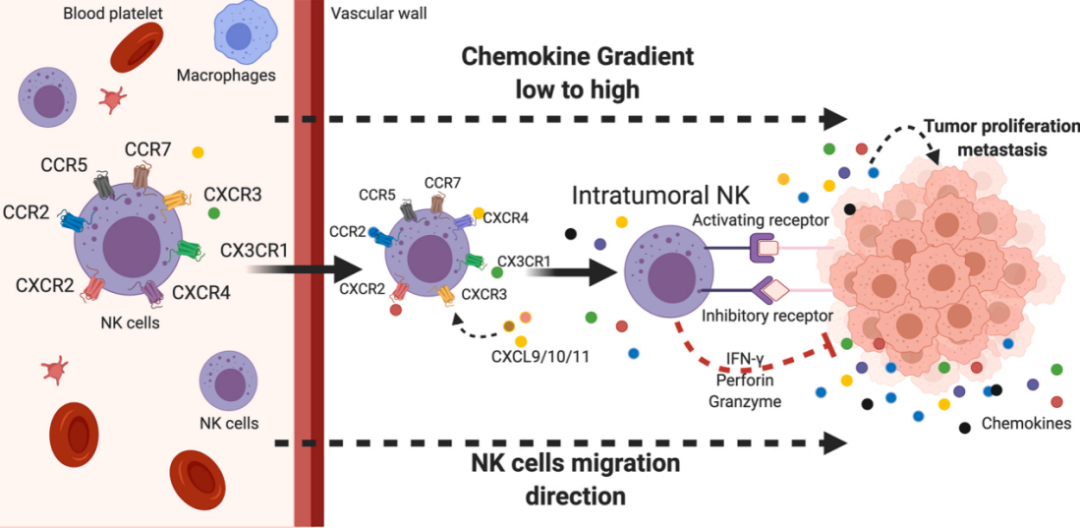 以自然杀伤(NK)细胞为基础的细胞治疗已经成为治疗多种恶性肿瘤的强大武器。然而,治疗性NK细胞向实体肿瘤的浸润不足仍然是其临床应用的一个巨大挑战。而趋化因子网络在淋巴细胞的迁移中发挥着重要作用,已经被认为是驱动NK细胞瘤内浸润的关键。